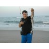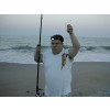 Joe's puffer Joe's first fish of the night. I don't think I've ever seen one of these caught in the surf before. |  Joe's sand shark We caught enough of these things to make some great sharkskin handbags. Doesn't Joe look like a badass? |