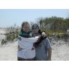 Beth Ok, the hockey jersey got passed around. Look how good she looks! And happy too! You should have seen how happy the guys who were checking her out were. ;) |  Beth and Jason Everyone had a great time! Even those of us who tend to be grumpy. Maybe having sand in your shorts is a good thing? |